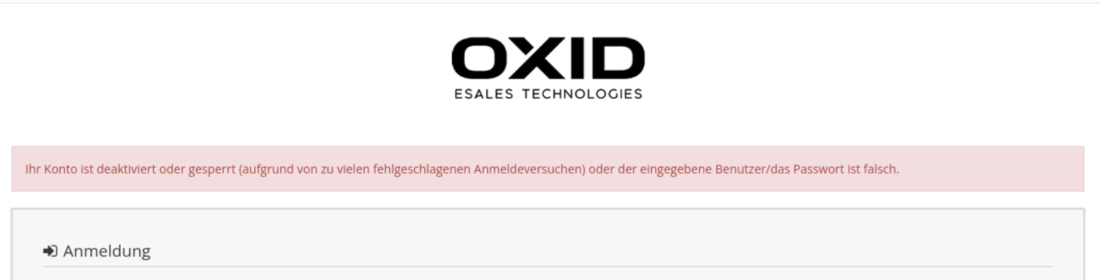 Ihr Konto ist deaktiviert oder gesperrt (aufgrund von zu vielen fehlgeschlagenen Anmeldeversuchen) oder der eingegebene Benutzer/das Passwort ist falsch.