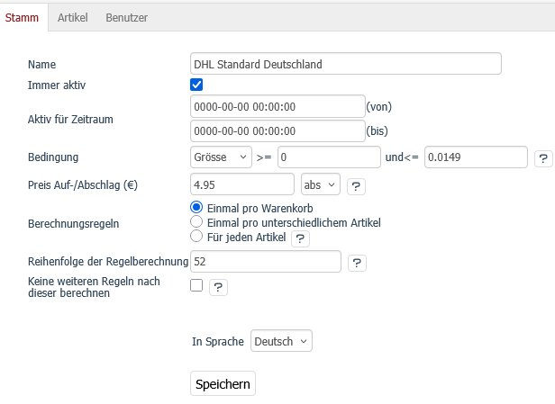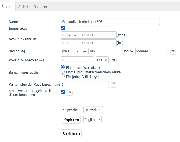 Anbei mal die aktuellen Versandkostenregeln - kann mir bitte jemand sagen, was ich wo eintragen/ändern muß, damit mein Wunsch in Erfüllung geht?