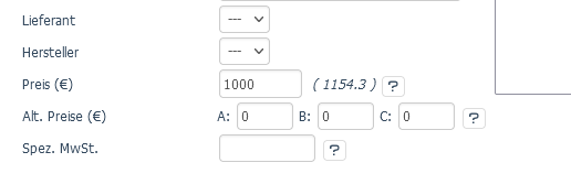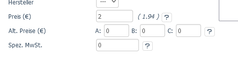 Bei mir zeigt er dann 1.190,- Euro in der Klammer im Admin an, im Frontend auch den Bruttopreis von 1.190,- und im Warenkorb passt Berechnung Nettopreis 1.000,- Euro und Bruttopreis 1.190,- Euro.