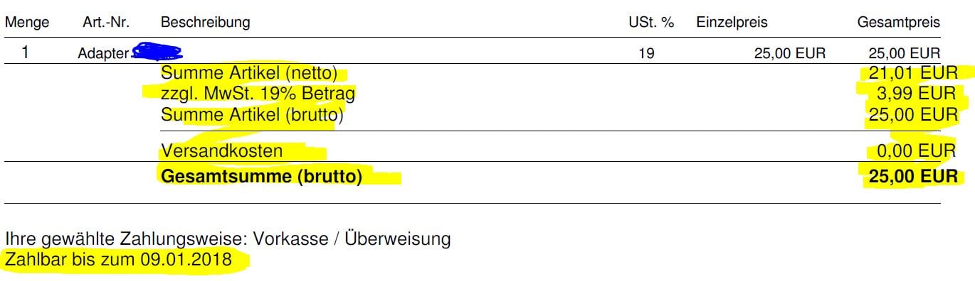 Da ich aktuell Kleinunternehmerregelung habe, darf die ja nirgends stehen…