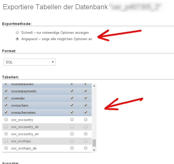 “Select Tables” wählen (Tabellen mit Präfix oxv_ werden abgewählt)
