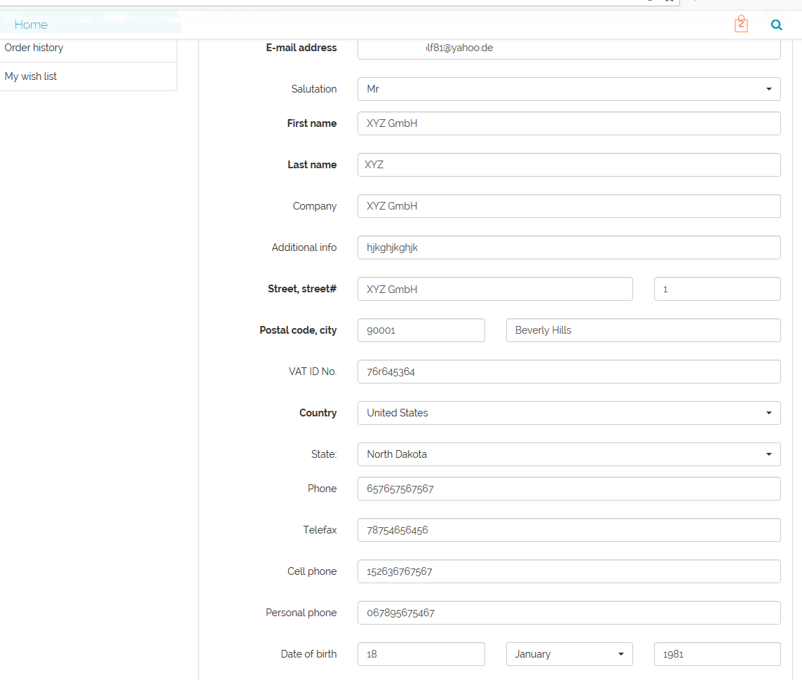 Ich habe TEstweise eine Order aus USA in meinem Shop aufgegeben.